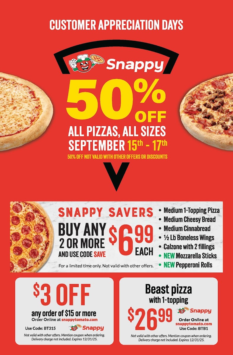 With a focus on quality ingredients and exceptional service, Snappy Tomato Pizza - Batavia is sure to become a favorite for pizza lovers in the area. Experience the convenience and taste that keeps customers coming back!